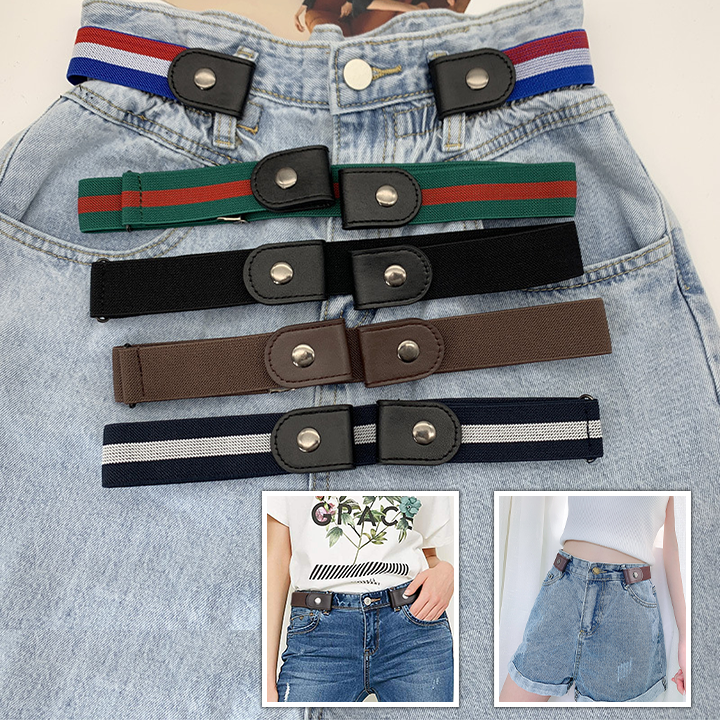 Όμως, μην ανησυχείτε! Οι 5 αόρατες ελαστικές ζώνες μέσης ήρθαν για να δώσουν λύση στο πρόβλημά σας! Χωρίς αγκράφα, σε 5 όμορφα διαφορετικά χρώματα για όλες τις περιστάσεις διευκολύνουν ακόμα και εσάς που απεχθάνεστε να φοράτε ζώνες! Αρκεί να την κουμπώσετε στο πρώτο δεξί και στο πρώτο αριστερό θυλάκι του παντελονιού και αυτό δεν πρόκειται να φύγει από τη θέση του!