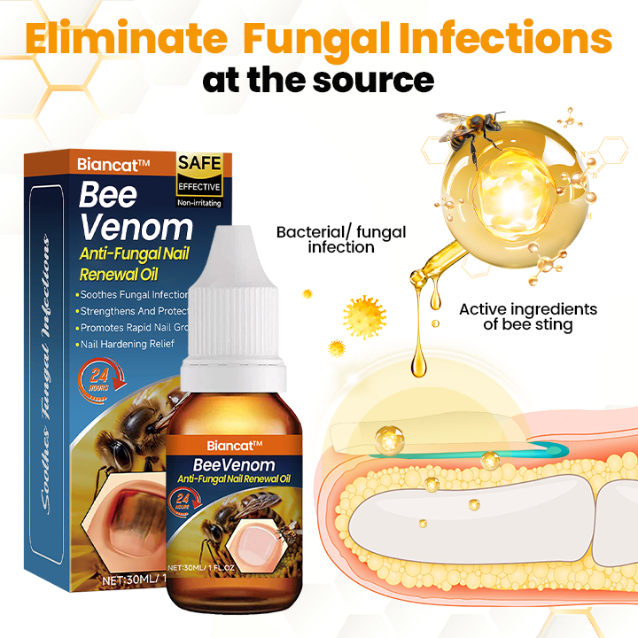 Το Αντιμυκητιακό Λάδι Αναζωογόνησης Νυχιών με Δηλητήριο Μέλισσας αντιμετωπίζει αποτελεσματικά τις κοινές παθήσεις των νυχιών, συμπεριλαμβανομένων των μυκητιασικών λοιμώξεων, της παρωνυχίας και των ενσφηνωμένων νυχιών, προάγοντας την επούλωση και μειώνοντας τον πόνο. Βοηθά επίσης στην αποκατάσταση του αποχρωματισμού των νυχιών και ενισχύει τα εύθραυστα νύχια, ενθαρρύνοντας υγιέστερα, ισχυρότερα νύχια, ενώ παράλληλα βελτιώνει τη φυσική τους εμφάνιση.