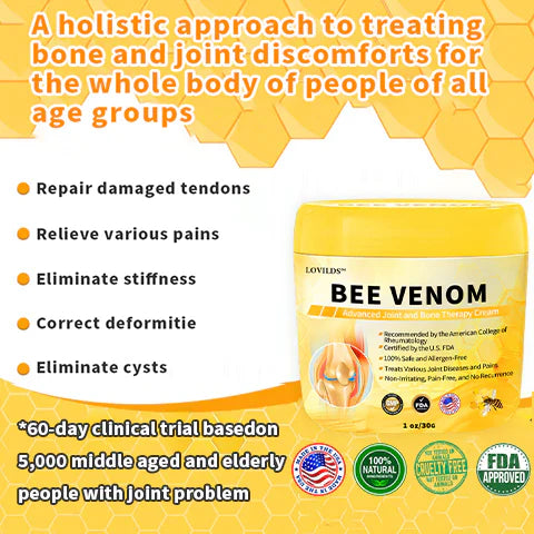 Επιπλέον, μελέτες έχουν δείξει ότι η κρέμα LOVILDS™ Κρέμα θεραπείας αρθρώσεων και οστών με δηλητήριο μέλισσας βελτιώνει επίσης σημαντικά τη συνολική υγεία των αρθρώσεων και των οστών, ενισχύοντας τη φήμη της κρέμας Bee Venom Therapy Cream ως μια αξιόπιστη λύση για τα προβλήματα των οστών και των αρθρώσεων.