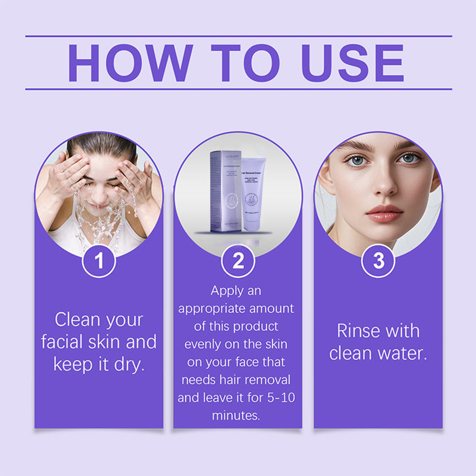 - Εφαρμόστε μια κατάλληλη ποσότητα του προϊόντος ομοιόμορφα στο δέρμα του προσώπου που χρειάζεται αποτρίχωση και αφήστε την για 5–10 λεπτά.